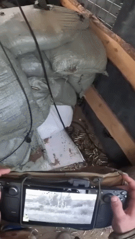 視頻拍攝於塹壕中的一個標準的重機槍陣地上,一名烏軍機槍手正在操作一挺大口徑機槍,似乎是在進行試射。不過,這名機槍手並沒有握住機槍扣動扳機,而是拿着一部Steam Deck掌上游戲機,通過遊戲機的屏幕和手柄遙控機槍,進行瞄準和射擊!