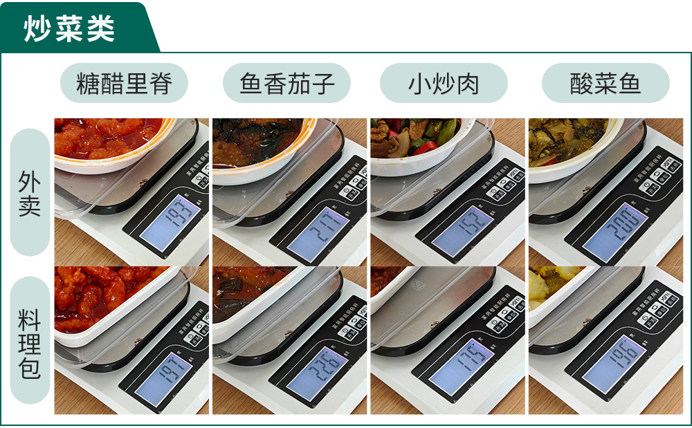 把每份料理包和外賣的重量都精確到克: