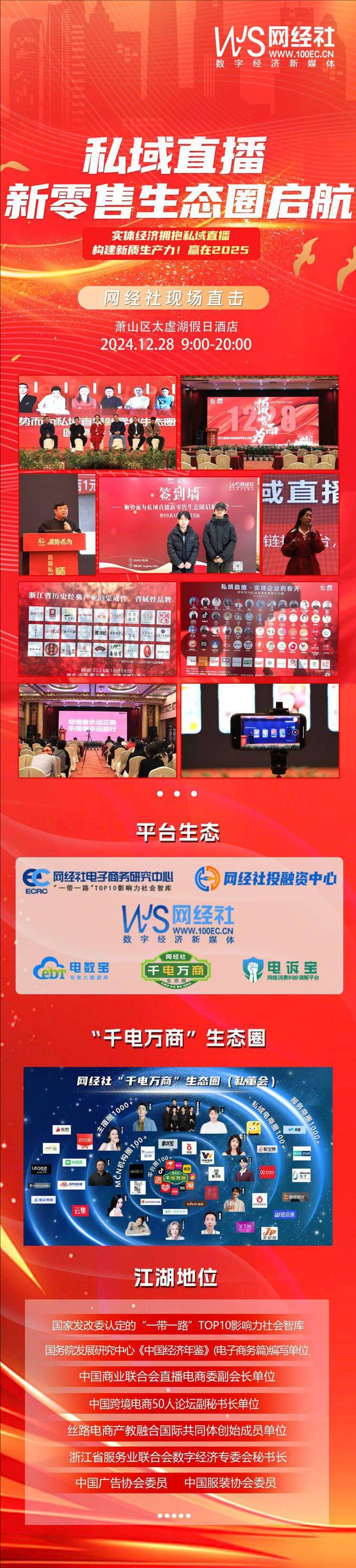 12月,冬意漸濃,凝心聚力。在2024年的最後一個月裏,網經社作為擁有18年曆史的數字經濟新媒體,以其專業的視角和全面的報道,直擊各大相關活動論壇,並精心策劃自己舉辦的活動。如網經社榮獲新零售風雲榜年度優秀合作伙伴、直擊首屆順勢而為私域直播新零售生態圈、發佈各類報告等等,以下網經社帶你回顧12月電商大事件。