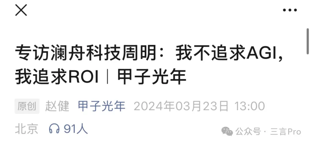 還有瀾舟科技創始人兼CEO周明也曾表示自己不追求AGI,而是追求大模型如何服務客户,追求計算好ROI。
