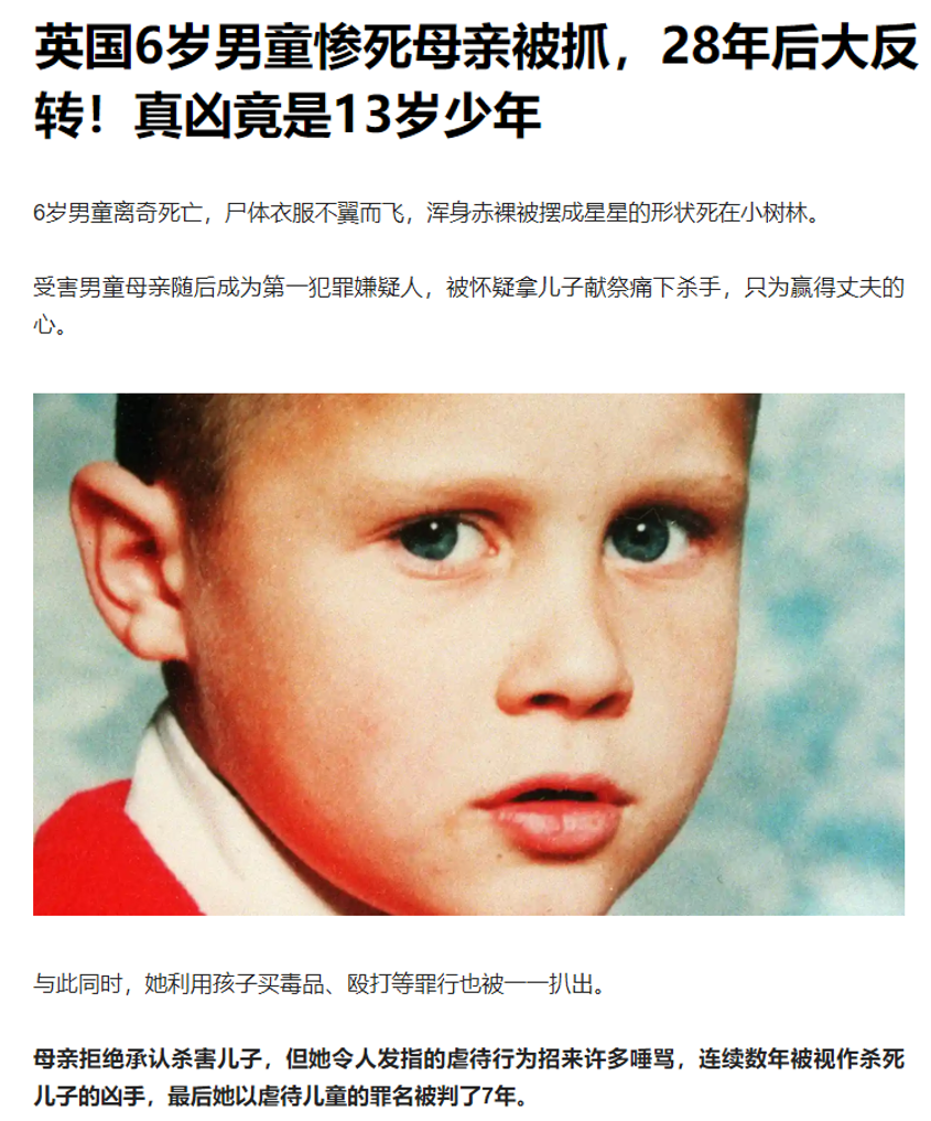 而在英國,我們提到了彼得伯勒瑞可遇害案。這起案件的兇手,同樣是個13歲孩子。