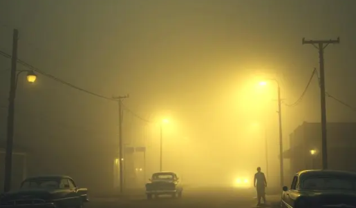霧氣本身是由靠近地表的微小水滴或冰晶組成的,通常在空氣温度達到露點時形成的。霧霾中的顆粒物,其實源於空氣中的污染物。在燈光的照耀下,顆粒變得可見了。