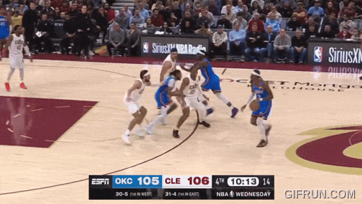 今天之前,東部第一的騎士10連勝,西部第一雷霆15連勝。NBA史上第三次10+連勝球隊對決。彼此都厲害,比賽也緊湊:從頭到尾交替領先26次平手8次,分差沒到過兩位數。