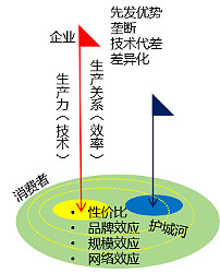 企業業務活動的本質,就是到市場上畫四個圈:性價比、品牌效應、規模效應、網絡效應。並守住這四個圈,即建立護城河。