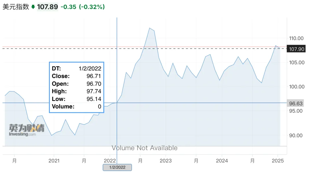 (在戰爭爆發前美元指數在96,但隨後便輕鬆突破了110)