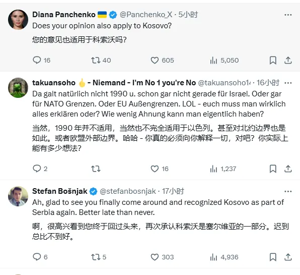 “邊界不得以武力移動。這一原則適用於所有國家,無論是東方還是西方。在與歐洲夥伴的會談中,人們對美國最近的聲明感到不安。很明顯:我們必須站在一起。”