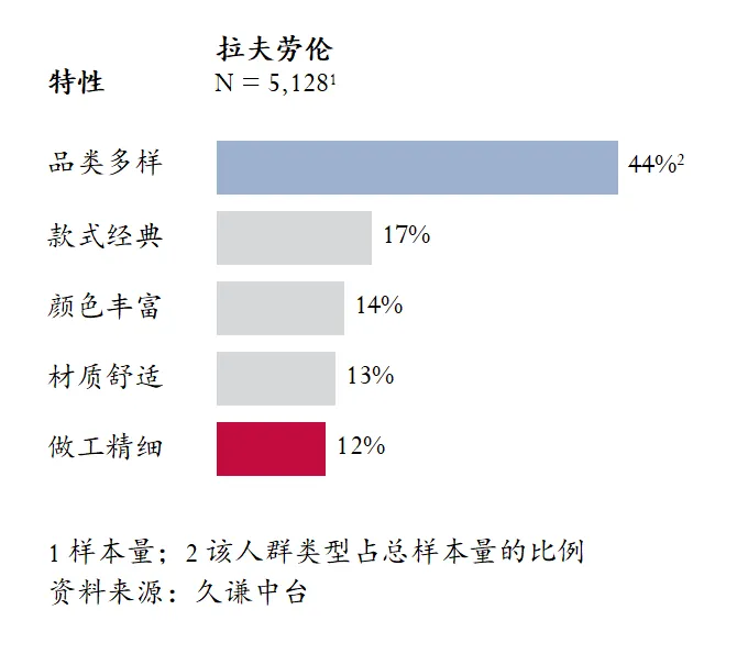 拉夫勞倫的產品在多個生活場景中表現出極高的使用頻率和偏好,尤其在日常穿搭和外出場合中,成為消費者的首選。在送禮場景中,拉夫勞倫尤其在生日和節日如聖誕、新年期間備受青睞,成為贈送給男友、家人及朋友的熱門選擇。此外,拉夫勞倫常被選做節日穿搭,特別是在中秋、農曆新年和春節等傳統節日,受到越來越多消費者的關注。對於熱愛旅行和追求高品質生活的消費者,拉夫勞倫的商務旅行服裝系列提供了既舒適又時尚的選擇,以適應出差和商務出行的需求。在職場穿搭方面,拉夫勞倫的經典與優雅設計使其成為通勤和商務場合的理想選擇,幫助職場人士提升個人形象和自信,同時滿足職場對正式與時尚並重的穿着要求。
