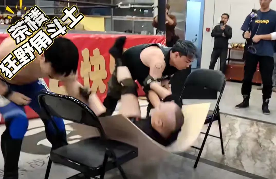 爆火後,廣州番禺酒樓老闆邀請「角鬥之王」團隊再次舉辦早茶WWE,和前兩次小範圍舉辦摔角比賽不同,這次他們搞了個大的。