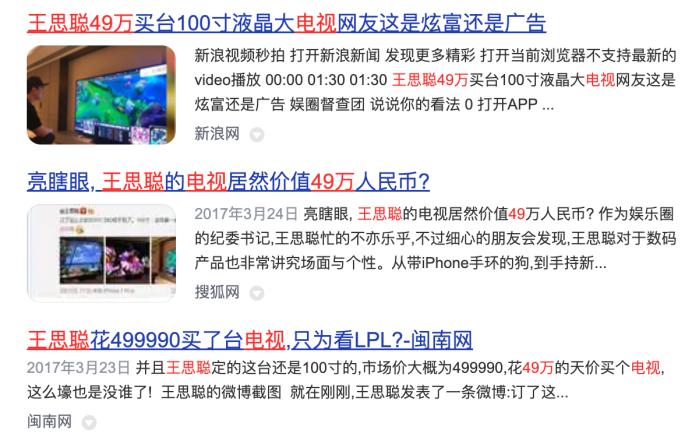王思聰購置的那台電視是當時最大的百吋電視,由於太大無法進入電梯間,安裝團隊甚至租了台起重機從陽台吊裝進屋,為此,王思聰一共花費了近50萬元。