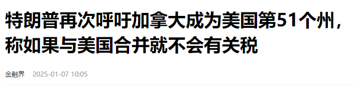 特朗普希望通過貿易戰的方式擊潰加拿大的經濟,然後逼迫加拿大併入美國——併入美國後,彼此都是一個國家了,那麼也就沒有關税了。