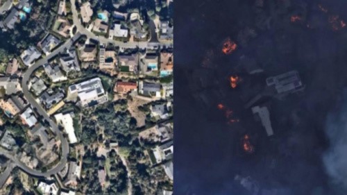 根據衞星照片顯示,太平洋帕利薩德(Pacific Palisades)和伊頓(Eaton)大火造成的破壞規模驚人,太平洋帕利塞茲原本是富裕的豪宅區,如今卻被燒成像廢墟,並有多所小學被燒燬,前後對比照令人痛心。