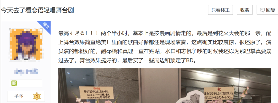 在堪稱災難的動畫播出期間,粉絲們還是等來了一些難得的好消息——《戀語輕唱》的真人舞台劇於7月接檔動畫正式開演,單場表演時長兩個半小時,且高度還原原作漫畫劇情。以部分觀眾發佈的觀後感來看,這場真人舞台劇的表現足以撫平動畫帶來的創傷,許多無法前往日本的粉絲都在期盼着舞台劇的BD能夠早日發售。