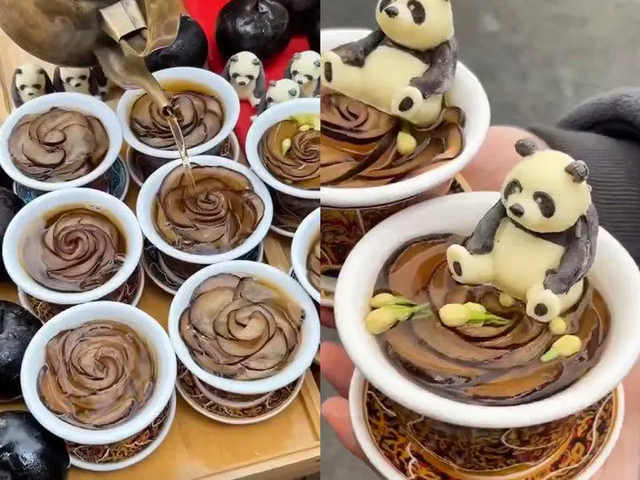 一貫是“被囫圇個”啃的凍梨,在2023年冬天被熱情的東北人切成片裝盤,更有創意的商家還把凍梨加工成“凍梨花茶”用熱水沖泡——“硬漢式”水果凍梨變成“精緻南方小點心”,以花一樣貌美的品相,寵溺着南方遊客的味蕾。