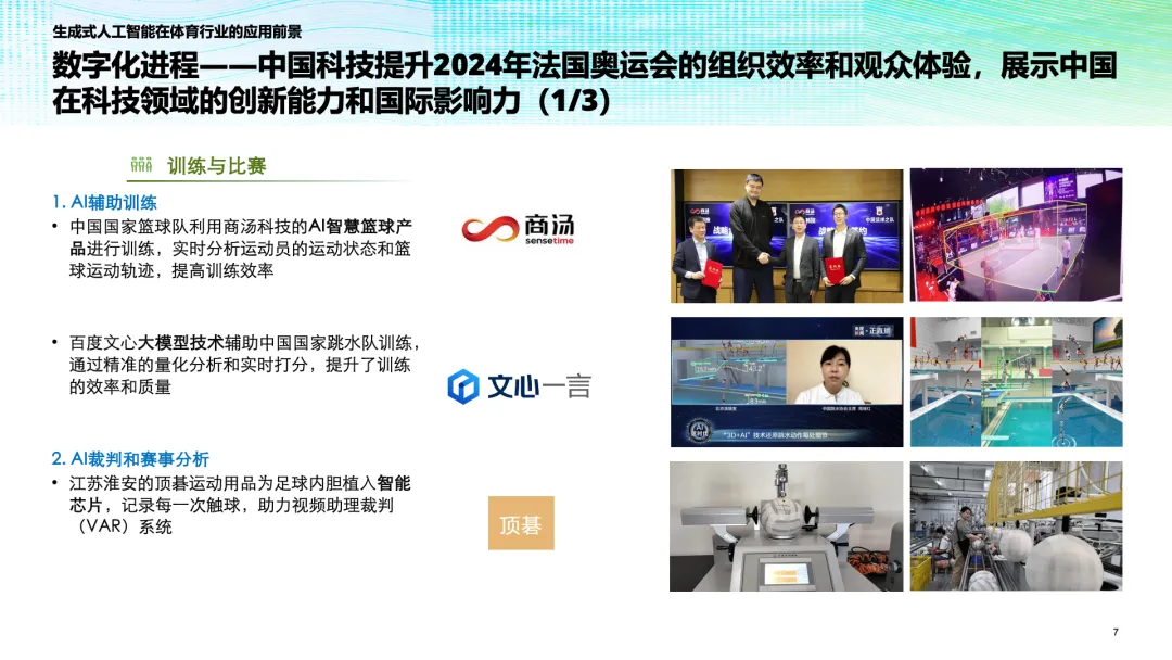 第三則是在大家看不到的訓練場景。“中國的AI以及科技硬件企業都有非常多的嘗試。比如商湯科技利用了AI輔助訓練,幫助整個籃球相關的訓練過程當中,獲得比較好的軌跡信息,提高訓練的效率。文心一言也是在文心大模型的基礎上,幫助國家跳水隊進行精準化量化分析的跳水隊訓練。”王易在演講中表示。