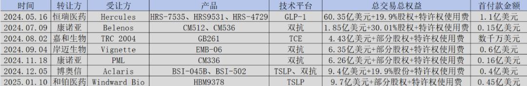 1月10日,和鉑醫藥與科倫博泰聯合宣佈,與Windward Bio AG(以下簡稱“Windward Bio”)完成了一項資本交易。根據協議,Windward Bio 獲得TSLP單抗 HBM9378在全球範圍內(不包括大中華區以及部分東南亞及西亞國家)進行研究、開發、生產和商業化的獨家授權。和鉑醫藥和科倫博泰有權獲得總計高達 9.7 億美元的首付款和里程碑付款,以及基於淨銷售額的個位數至雙位數百分比的分級特許權使用費。其中,首付款和近期里程碑付款共計 4500 萬美元,包括現金付款及 Windward Bio 母公司股權。