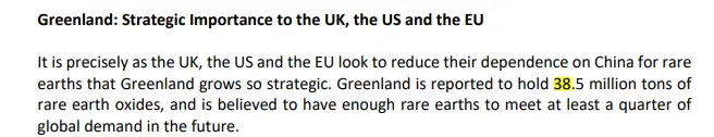 格陵蘭島擁有3850萬噸稀土氧化物的儲量(也有的沒用儲量),佔世界總儲量的1/4。