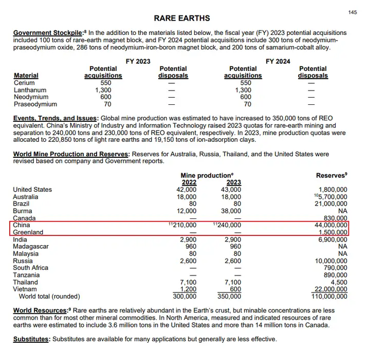 然而,近期新華社的報道,顯示的格陵蘭島稀土儲備數據卻是: