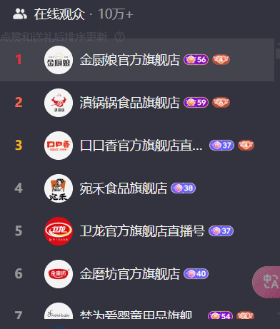 不僅是直播內容簡單,直播間觀眾也挺特殊,我第一次在一個直播間見到這麼多品牌官方旗艦店。