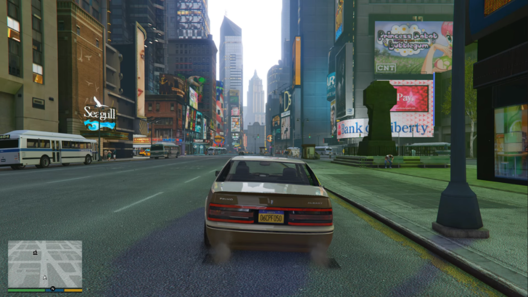 新自由城常常堵車——這是有意為之,意在還原原作自由城和現實中紐約的真實狀況。街上的車輛均由4代實裝的型號填充,車牌號、車輛的引擎轟鳴聲、車上廣播電台播放的音樂,都是原汁原味。