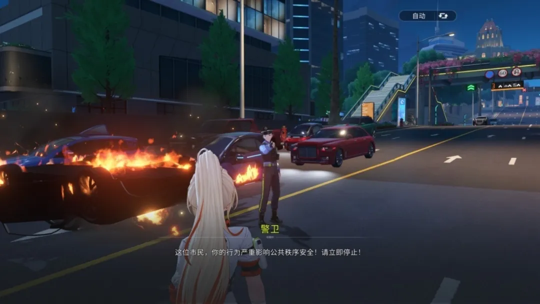 而當玩家在馬路上蓄意破壞屬於NPC的車輛時,還會引來城市治安部門的抓捕。如果玩家持續抵抗,警報等級還會持續提升,前來抓捕的治安力量也會不斷加強,直至將玩家角色抓捕歸案。此時玩家只能乖乖去城安署通過答題的方式解救隊友或等待關押時間結束。