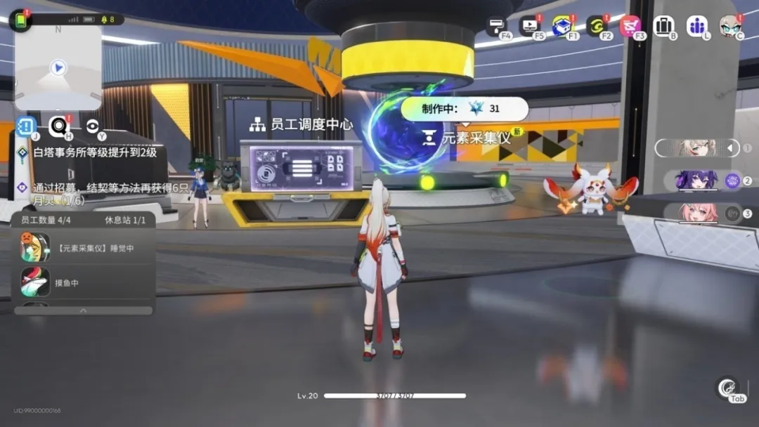 比如白塔事務中心就是一個自動產出資源的生產設施。玩家只要佈置好生產設備、安排好合適的月靈來此工作,它們就會自動生產資源,只需定期收取即可,完全解放雙手。