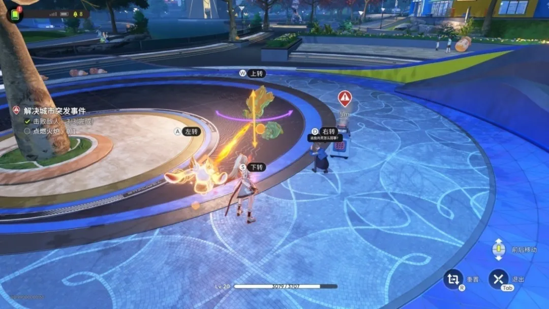 在《望月》裏,大部分任務都有不止一種完成方式。比如城市突發事件中會有一些諸如“救火”“吹散毒氣”之類的任務。玩家既可以召喚月靈使用對應屬性的技能完成任務,也可以切換有對應屬性的角色通過攻擊完成任務。