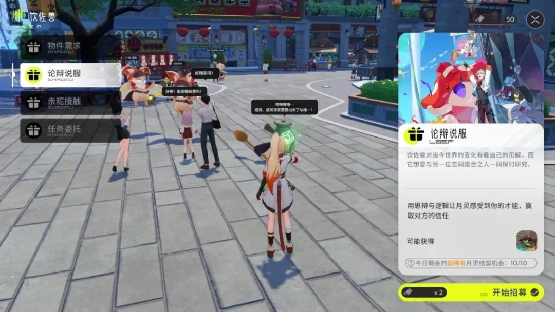 月靈的獲取同樣有送禮、論辯、親呢、戰鬥等多種不同方式可選。喜歡“撿垃圾”的玩家可以通過送禮獲取月靈,喜歡用拳頭的玩家則可以通過戰鬥獲取月靈。要如何招募,全由玩家自主選擇。