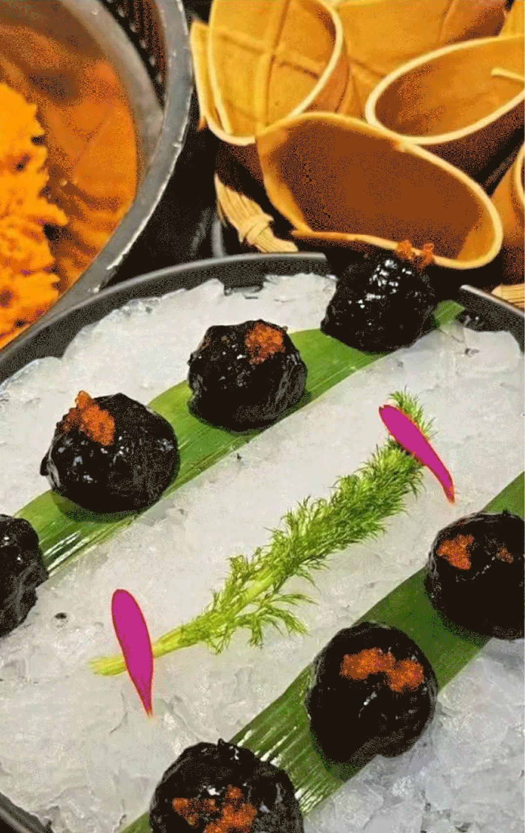 細細看去,誘人的食材旁總是灑落着零星的茉莉花和薄荷葉,既能保證肉類原有的品質又可有效遮掩其本身的腥味。