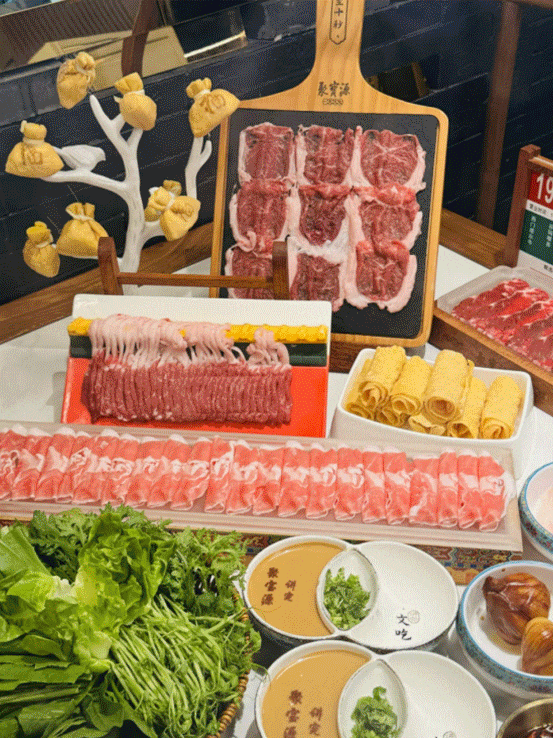 華北地區火鍋菜品擺盤偏愛大氣、圓滿,這與北方人的豪爽性格和當地風俗有關。同時作為國內頂級的牛羊肉出產地,在各式菜品中,牛羊肉的佔比頗為重要。