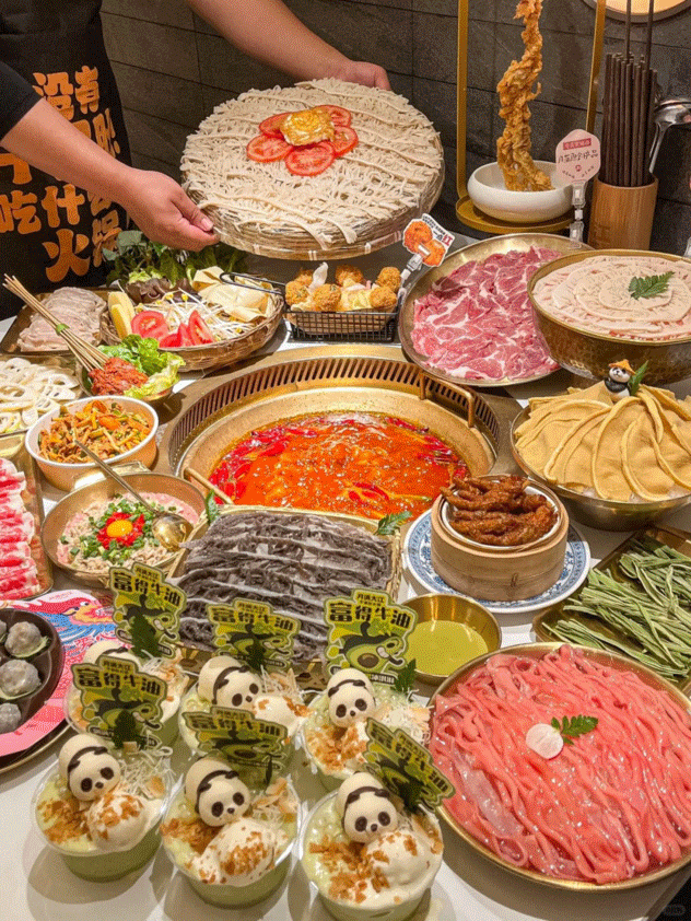在西南地區的火鍋擺盤中,色彩的運用尤為大膽和豐富,這與當地多姿多彩的民族大融合和特有的風俗習慣相呼應。