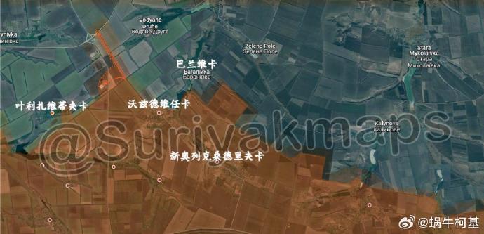 3、奧切列季涅:俄軍攻佔了葉利扎維季夫卡東北的畜牧場,併到達了T0504公路。雖然尚未證實俄軍是否能夠在那裏完全紮根,但可以肯定的是俄軍仍在行動,這證實了此地已經沒有烏克蘭軍隊,因此紅軍村和頓河君士坦丁羅夫卡之間的這條道路實際上被切斷。