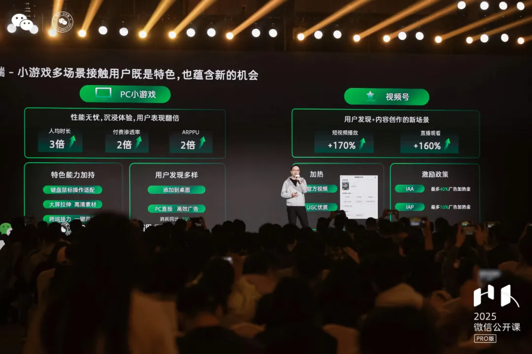 1月9日,“2025微信公開課PRO小遊戲專場”在廣州舉行,微信小遊戲團隊和四個當紅小遊戲開發者團隊分別分享了微信小遊戲生態的新玩法、新突破、新方向。