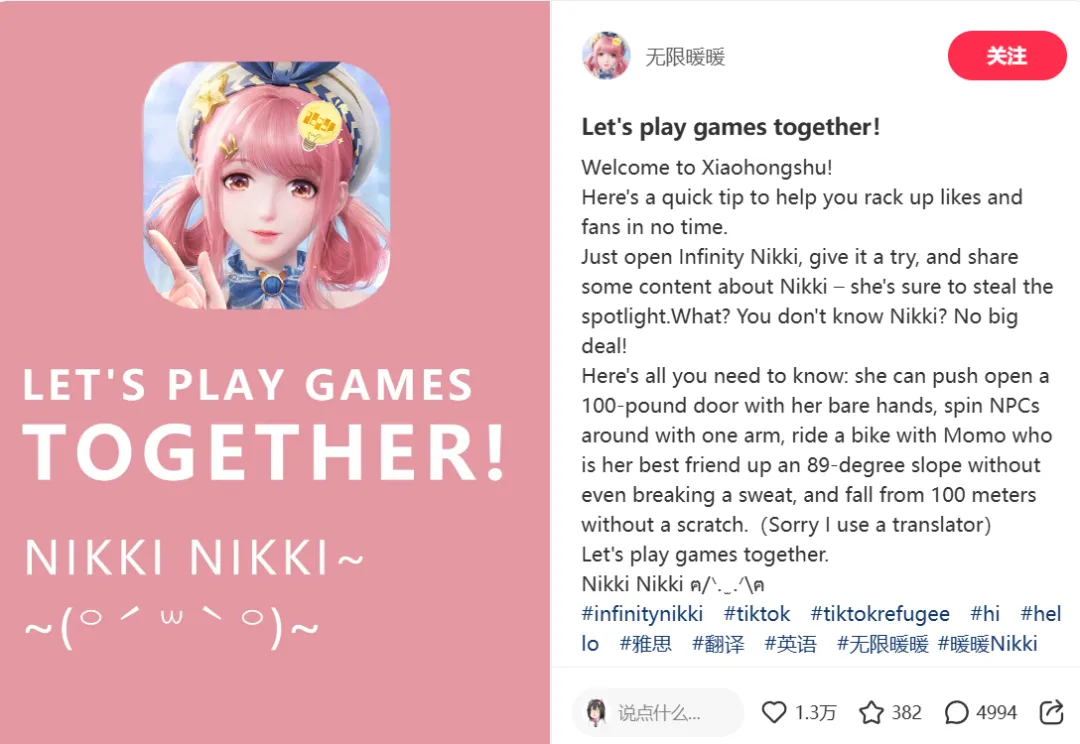 手談姬也於昨日開始在小紅書刷到大量海外用户發佈的筆記內容,並且有很多人會強調自己來自TikTok。