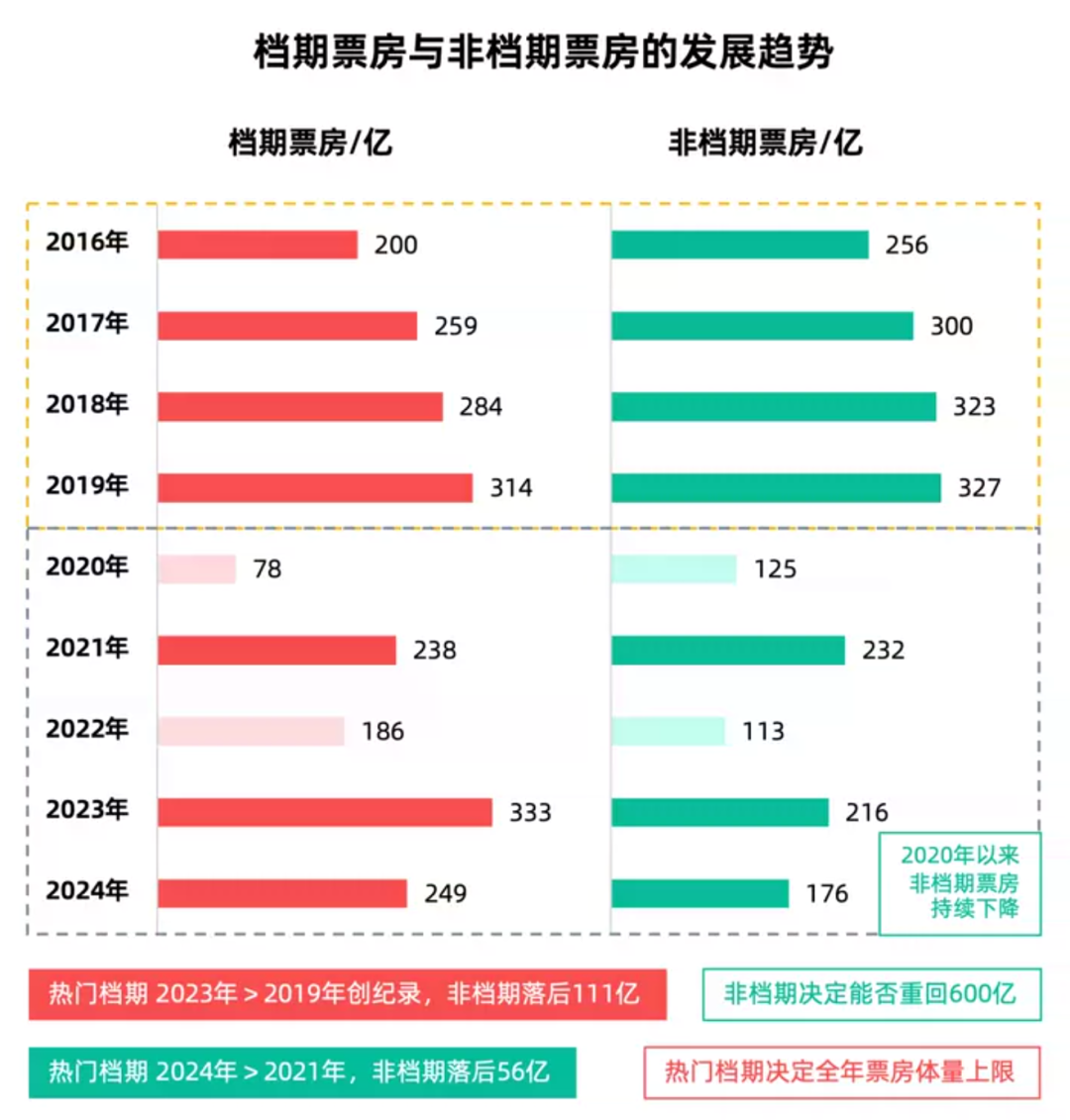 檔期產出收縮、“大片小賣”只是在2024年集中出現的現象,背後指向的其實是行業性的問題。