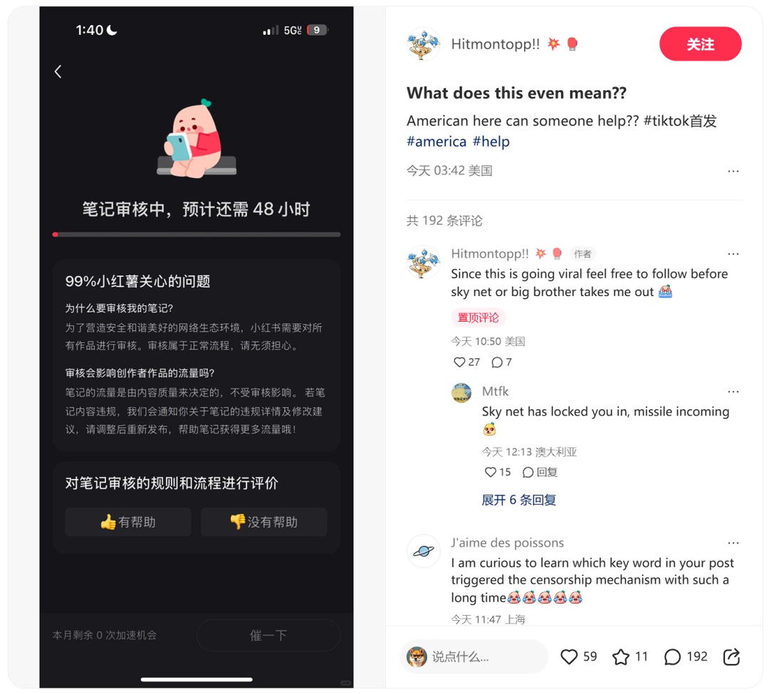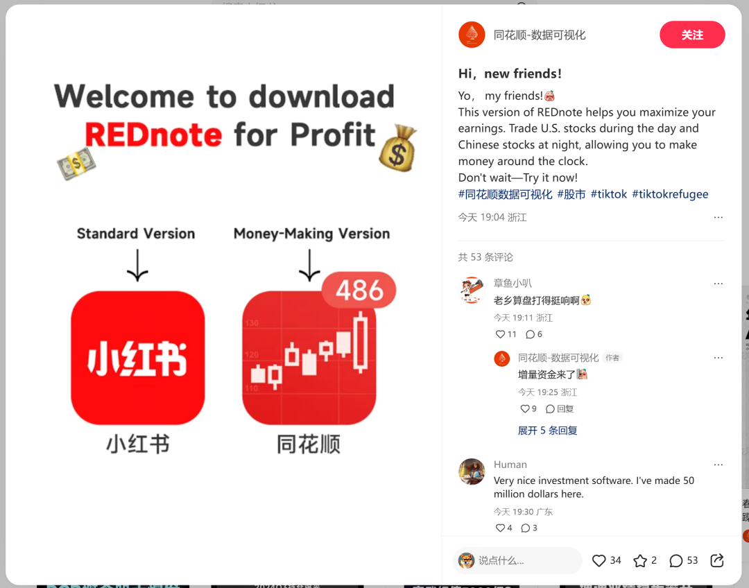 經濟觀察報:“小紅書內部團隊從1月13日當天就開始加班了,正在針對外國用户做功能優化,他們希望努力承接這波流量。同時,合規、安全相關的團隊也同步開展工作。用户或許很快能體驗到新功能。”