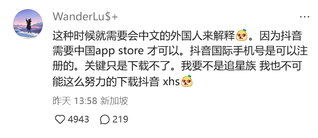 但是反觀外國人的帖子。作為發佈者。他們都是很簡短的內容。因為語言不通大家不能參與。他們的瀏覽量勢必沒有中文的高。作為用户刷到中文的概率更大參與感就會低。而且外國人的視頻都是跳舞 好無聊 當然這是他們作為用户分享自己生活的平台 但是xhs視頻特效之類的又做的不如抖好玩”