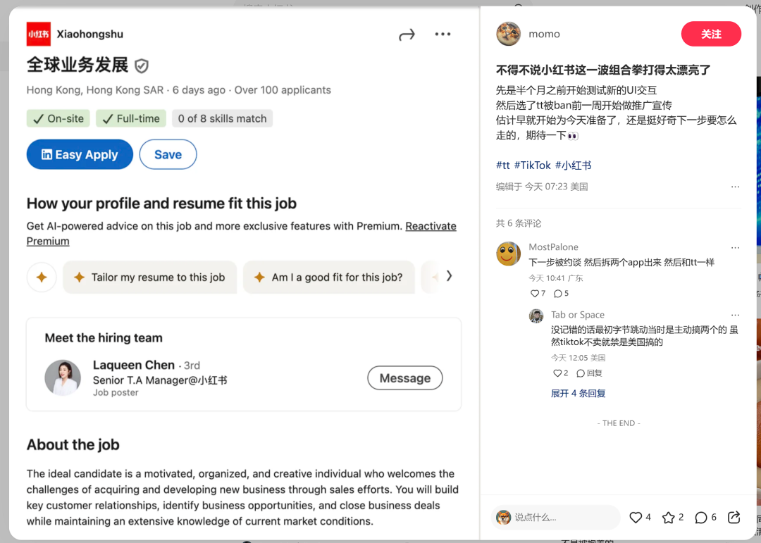 NGA上説小紅書加班做國際特供版,但消息來源不如這位真小紅書員工靠譜。