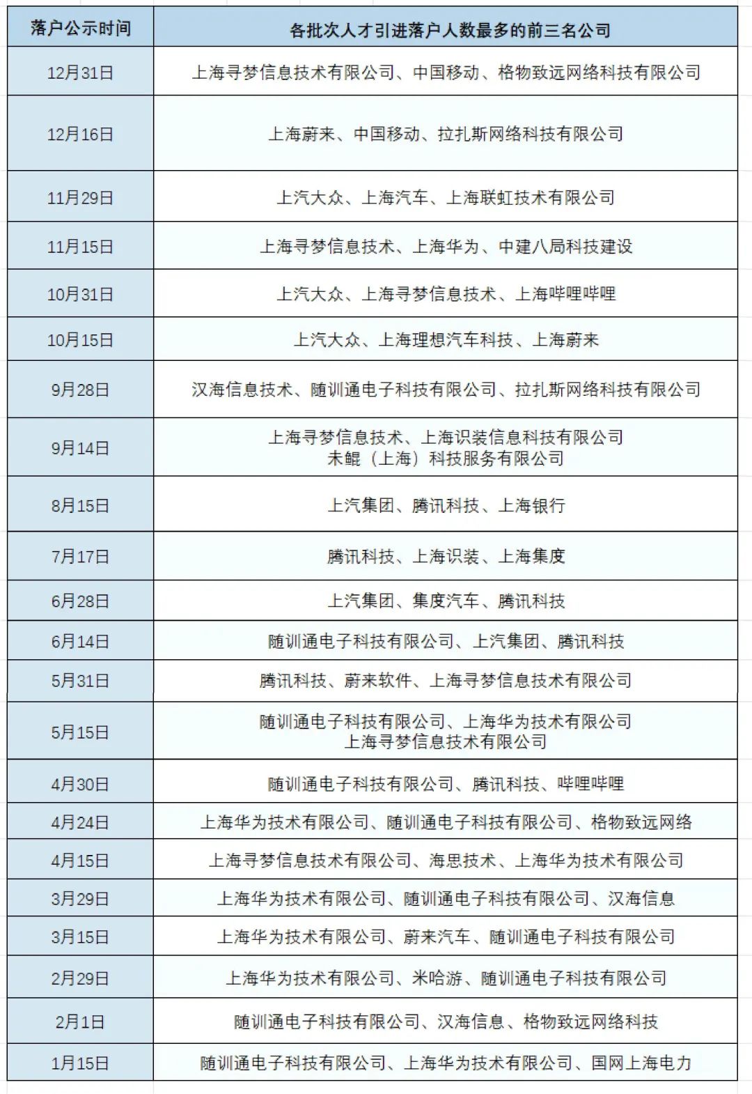 通過彙總2024年各月批次人才引進落户的公司不難看出