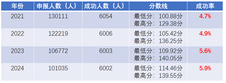 通過近4年的數據我們可以看出北京每年成功落户的人數基本保持在6000人的規模,成功率僅有5%左右