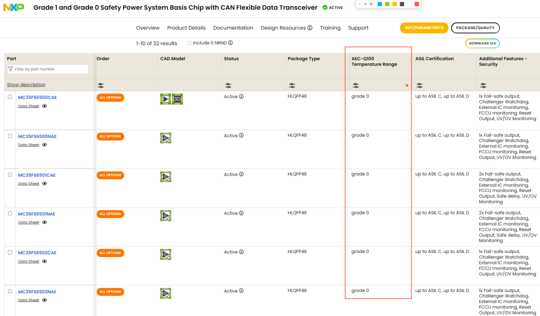 像英飛凌、恩智浦這樣的頭部企業因為起步早、體量大,就不説別的了,光是產品的車規認證就基本清一色的都是 grade 0 和 ASIL D 這樣賊高的等級,而且產品種類多、技術也很成熟。