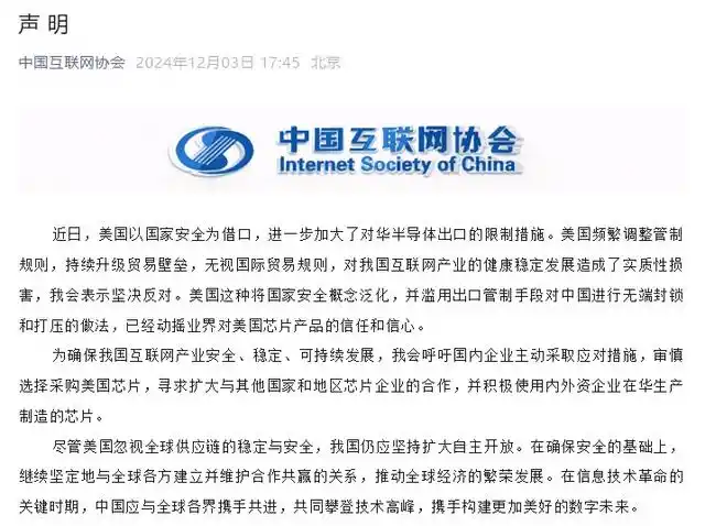 第二天,咱們國內的四大行業協會集體發了一份聲明,對美國的限制表示堅決反對,並表示現在美國的芯片產品和供應鏈已經靠不住,建議謹慎採購。