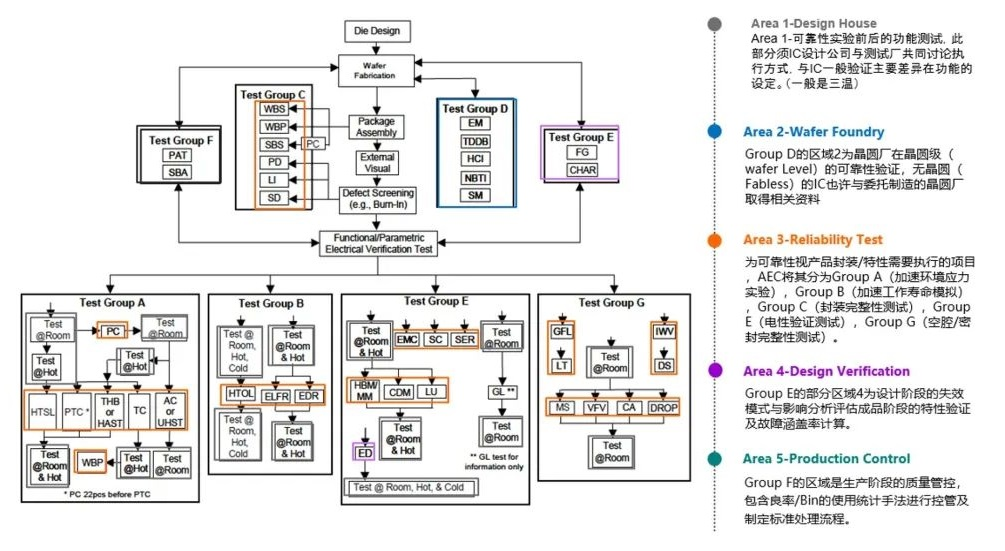 就比如用來驗證車規級芯片能承擔受多少温度考驗的 AEC-Q100 ,裏頭就有一長串總計 42 項的測試。評價結果,還會從寬鬆到嚴格分成四個等級。