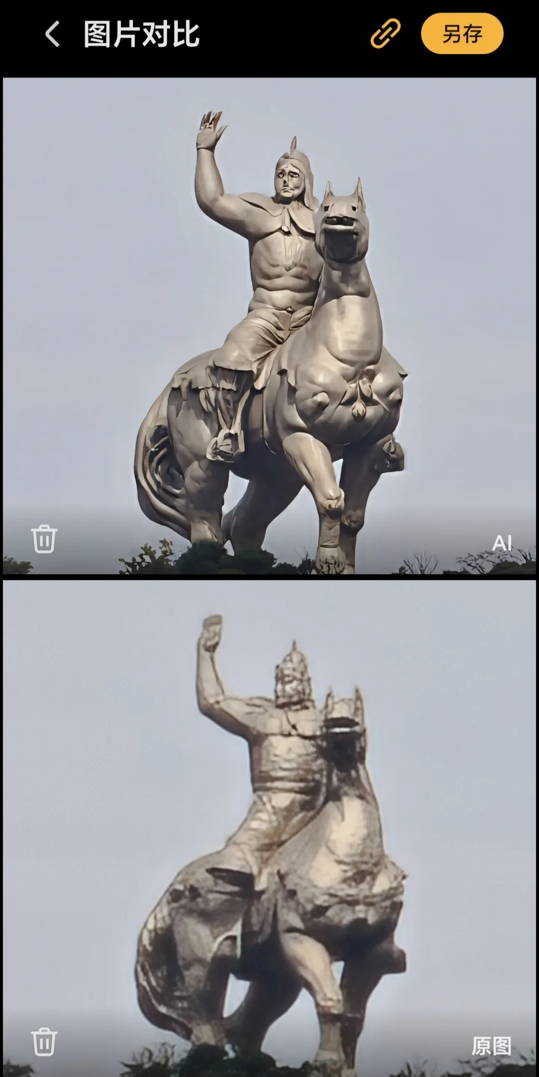要説榮耀的 AI 大王影像做錯了什麼讓它變成現在這樣,那就是現如今沒給這個 AI 生成的的程度加一個選項:用户選擇輕度的,就做降噪、鋭化、色彩處理;要是用户本身選了重度,那在三亞原地生成冰雪大世界也沒人説它不是,大夥兒頂多當個樂子。