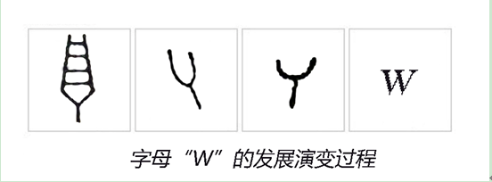 後來的字母文字是在使用過程中逐漸不斷演變而來,僅從下圖字母“W”的發展演變過程就可見一斑。簡潔的單個字母的最終定格,是各種以音表意為主的文字發展過程中最重要的標誌。(圖片源自360圖片)