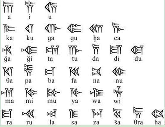 下圖是十七至十八世紀歐洲學者們破解了的楔形文字,楔形符號的下方對應的是音標。