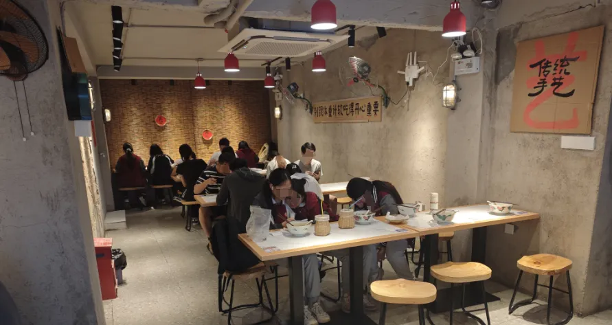 例如,幾個月前躥紅的生燙牛肉米線店就是典型案例。這類店鋪採用“酸湯+牛肉+米線+廢墟風”的模式,在廣州、上海、杭州等地迅速擴張,生意普遍不錯。單單在廣州,紅餐網觀察到今年至少開了數十家這樣的門店。
