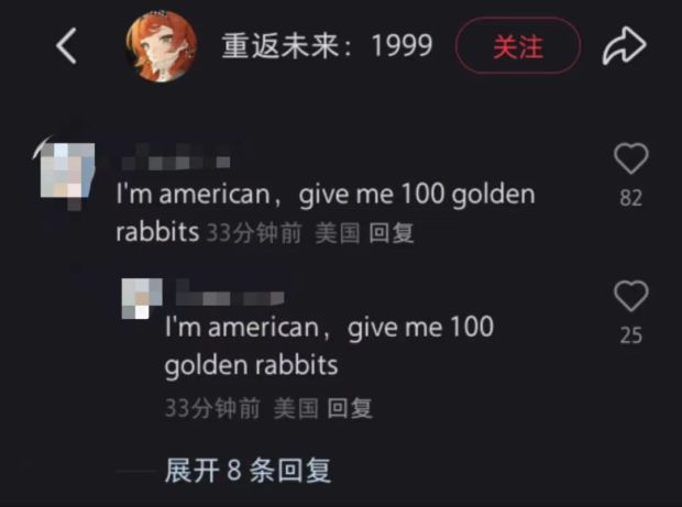 與網易的情況一樣,這些帖子的評論區回覆的用户大多定位國內。不過也有一些海外IP的國人用户,用英文玩梗,要求遊戲送福利……
