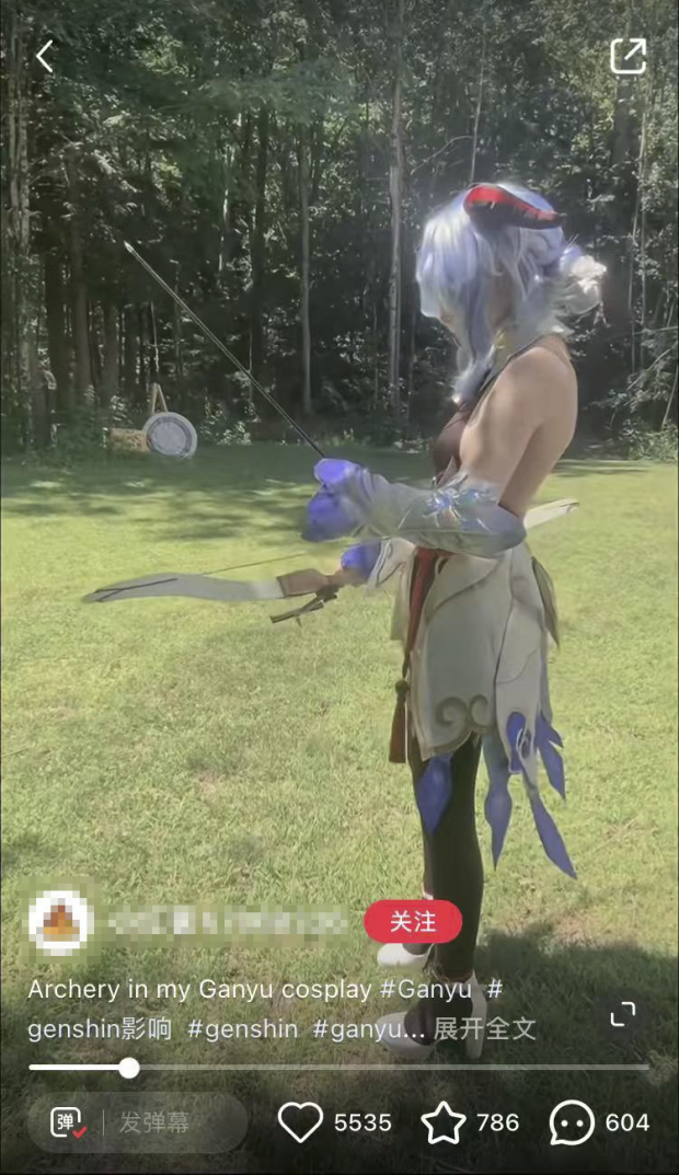 再比如,有美國用户把自己的甘雨cos視頻發到了小紅書上,這也被部分玩家戲稱為出口轉內銷。