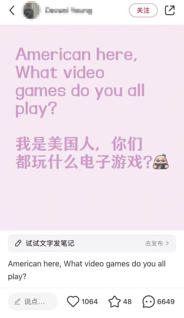比如有美國用户發帖詢問,小紅書上的用户平常都玩哪些遊戲,並表示自己很希望能嘗試一下。在評論區,不少玩家們提到了《戀與深空》《無限暖暖》《王者榮耀》《燕雲十六聲》等國產遊戲。