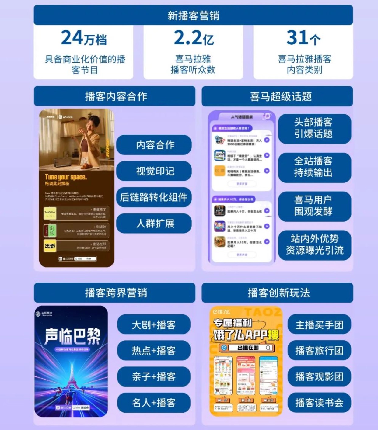 ▲相關平台針對播客推出的“一站式營銷解決方案”。